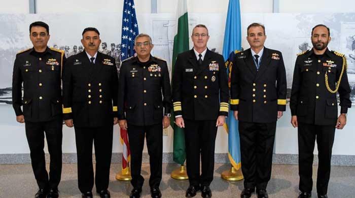 Chief of Naval Staff Admiral Naveed Ashraf in a group photo with National Defence University President Vice Admiral Peter A Garvin and others during his visit to US. Image released on October 17, 2025 — Directorate General Public Relations Chief of the Naval Staff Admiral Naveed Ashraf...from The News International - National